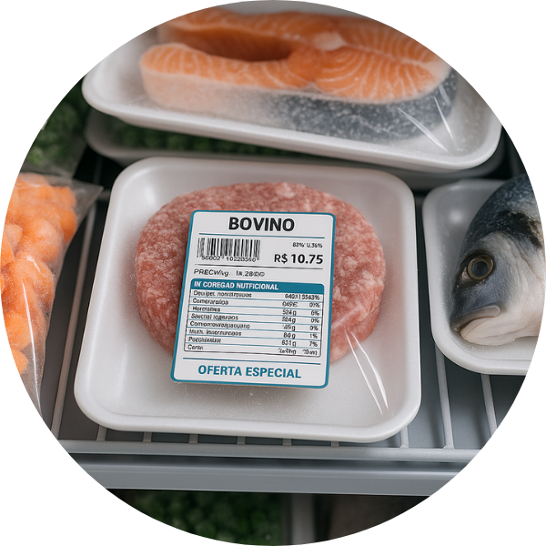 - Aplicação: produtos de peso variável e bandejas com frios, laticínios, assados, pães e salgados.