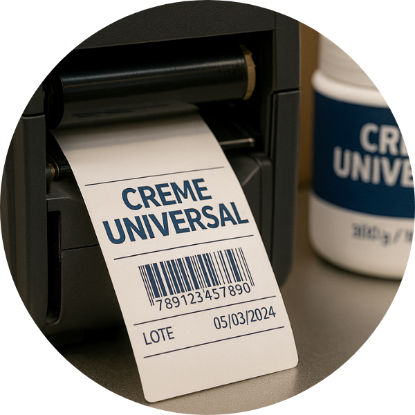 Utilizada na impressão de código de barras com informações sobre produtos, lote, peso e cuidados no armazenamento.